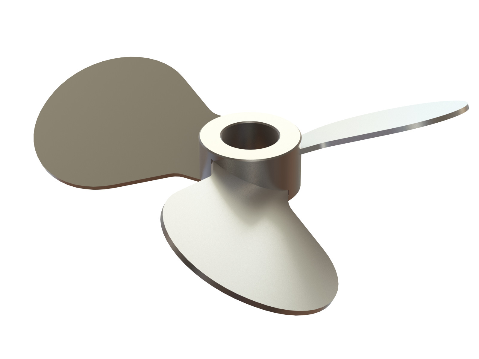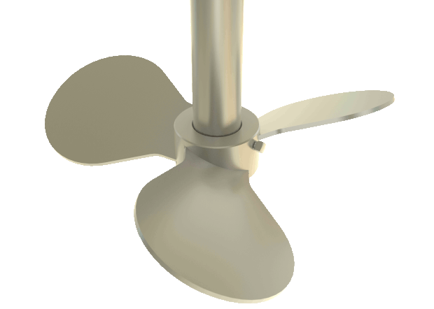 The Bio Prop was developed by Fusion engineering and our key biotech distributors to serve the sanitary and biotech markets. This new design provides excellent pumping ability while providing easy cleanup. The most important characteristic of this impeller is that it provides similar performance to the marine propeller, but it is fabricated from mill stock. Impellers from polished mill stock do not have the casting porosity commonly found in Marine style impellers. This impeller can be made to fit ANY shaft diameter. It comes standard in 316 Stainless Steel, but can also be fabricated in numerous other alloys as well. Various surface finishes are available.