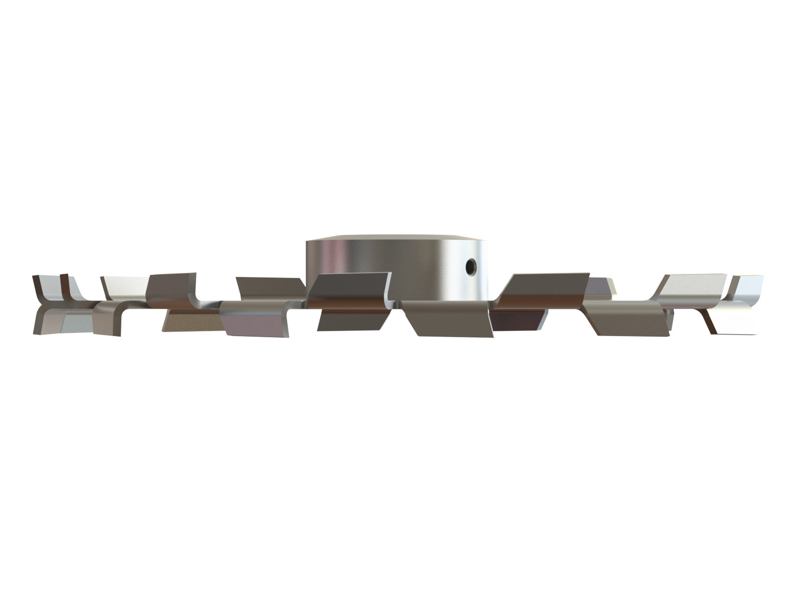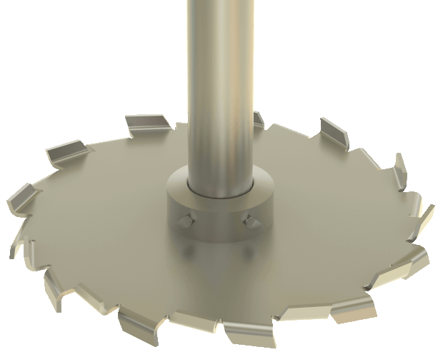 The Cowles/Sawblade design of this impeller provides mixing by generating high shear levels. The Cowles/Sawblade is suggested for use in wetting out powders, dispersing fine solids, breaking up agglomerations (clumps) and creating emulsions. This impeller can be fabricated to fit almost any shaft diameter and comes standard in 316 Stainless Steel, but we can build this design in any alloy or even in composite material. Hardened coatings are also available for greater wear resistance. Our standard STX follows industry typical blade geometries, but custom variations are also available as well.