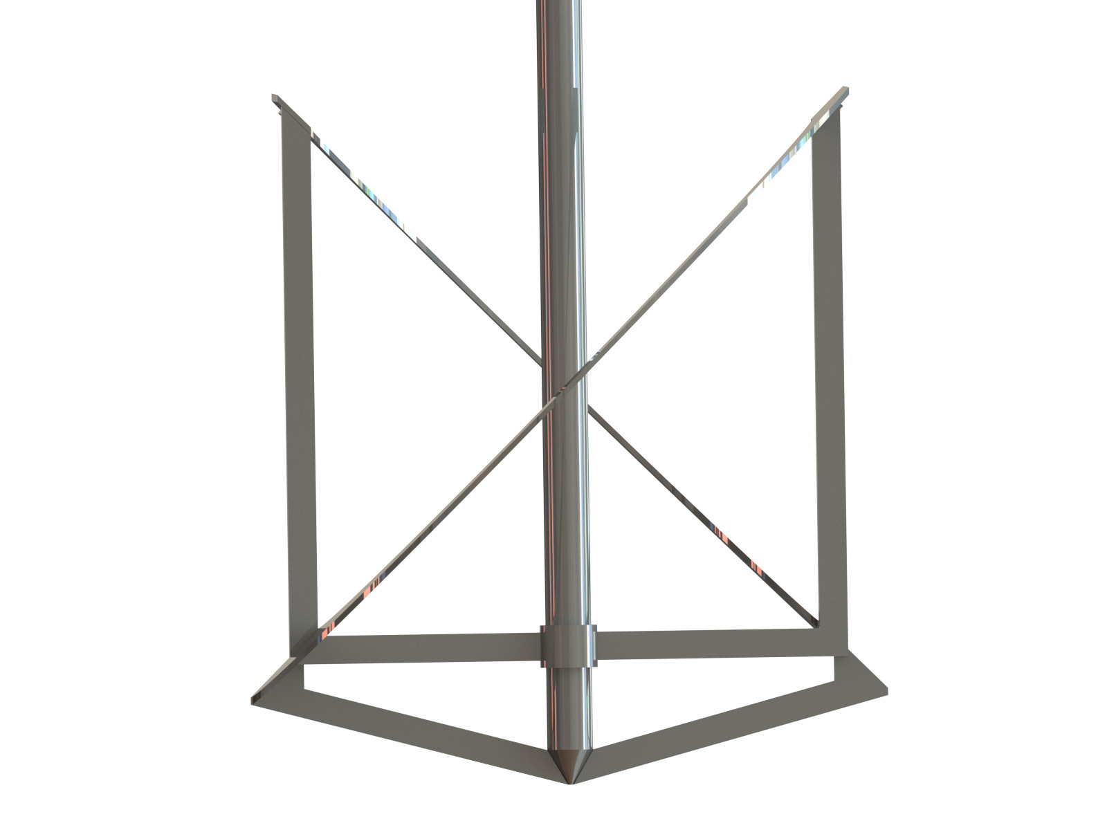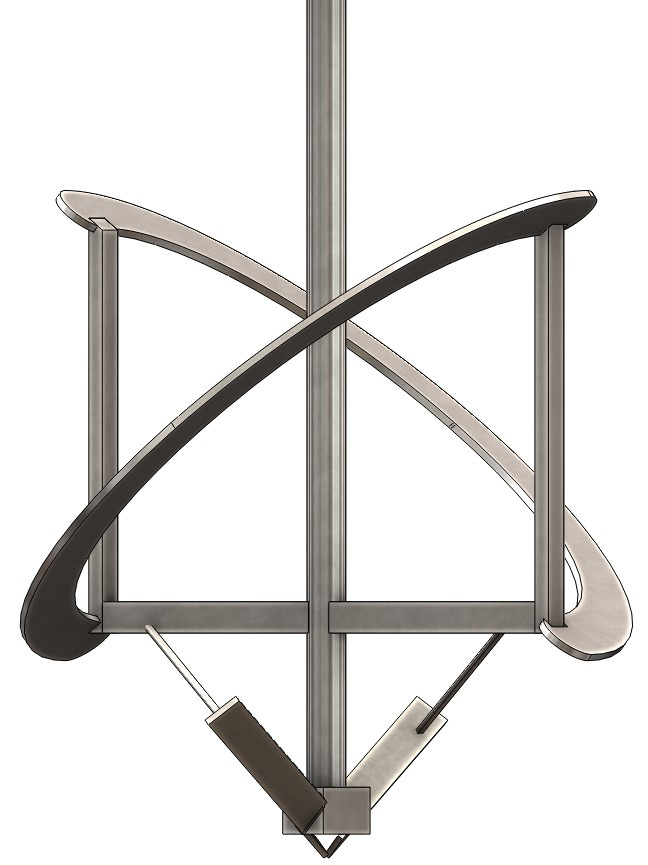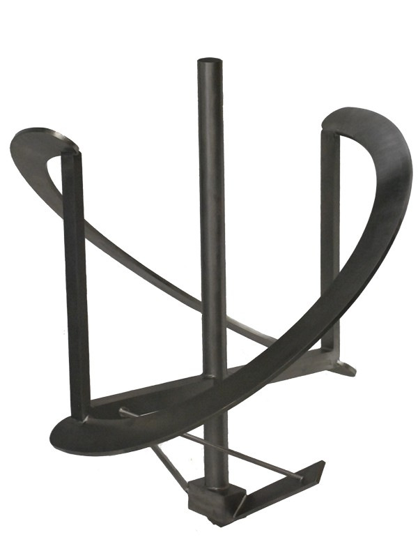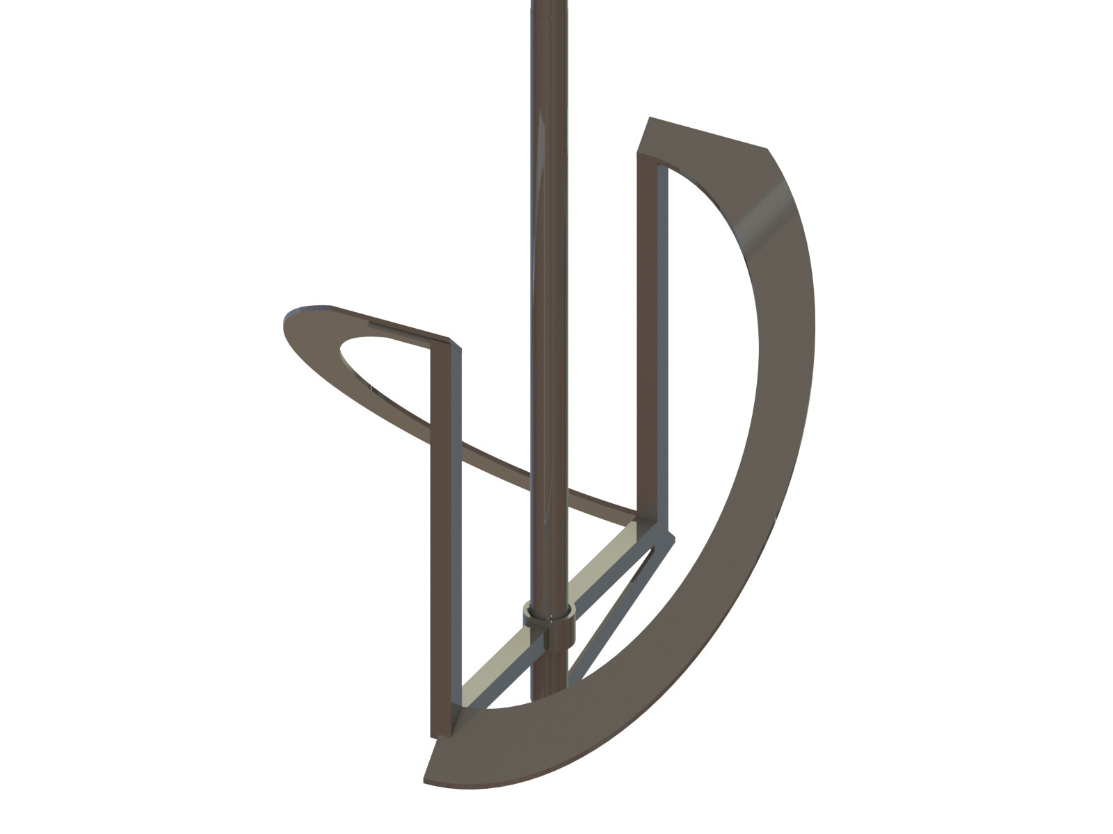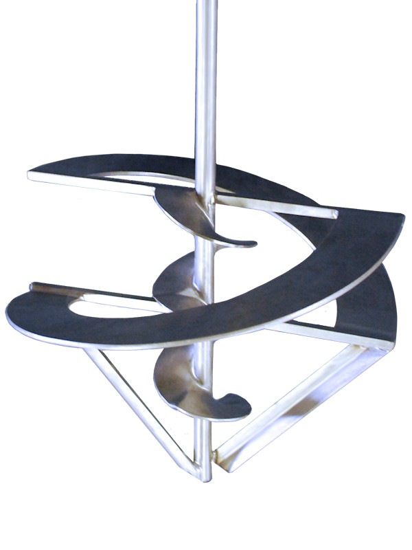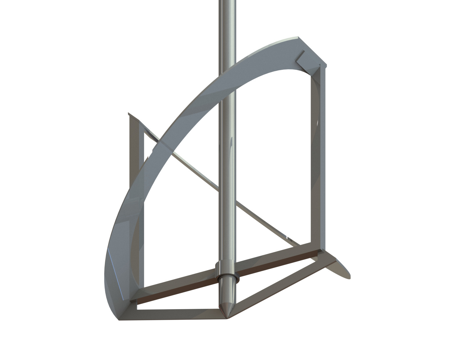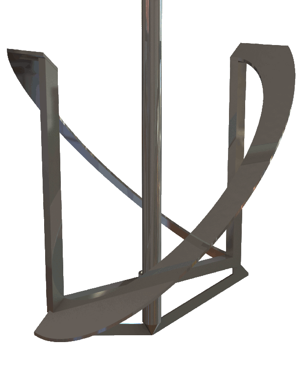 A great alternate to a helical vertical ribbon that is lower cost and easier to clean. When used in conjunction with correct tank baffle(s), the PS2 is great for high viscosity fluids, heat transfer, or delicate blending for low viscosity organic slurries. The design also promotes better top-to-bottom turnover on scrape wall agitation systems as opposed to traditional vertical sweep blades, resulting in faster blend times and better heat transfer. Additionally, the space between shaft and blades allows for secondary medium or high shear agitators to be added into the tank design. Bottom sweeps can also be added to provide additional fluid motion in tank dish and cone bottoms. Each configuration is custom designed for specific tank geometry, finish, materials, with add on items like bottom blades and fluid driven scrapers to meet process requirements.