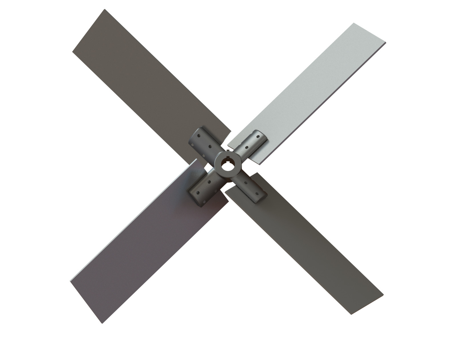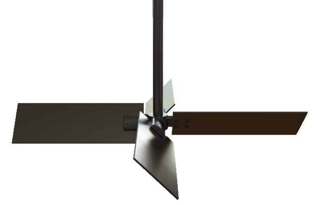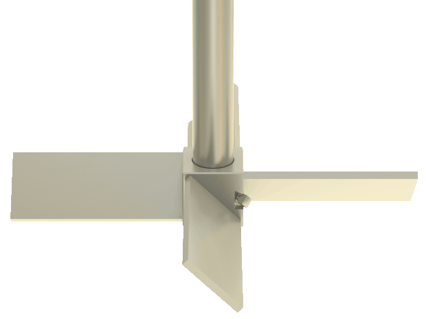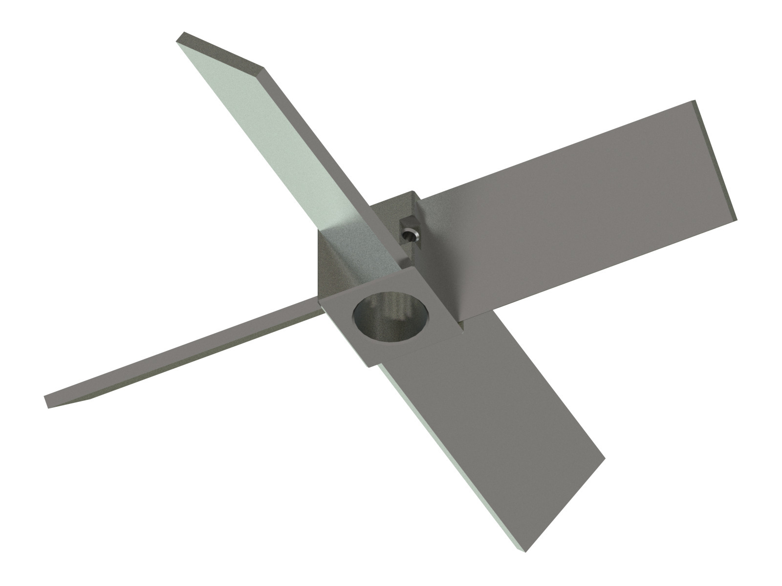 The Pitch Blade Turbine impeller is one of the most widely used impellers and one of the oldest designs of the mixing industry. The design of the PBT impeller provides a combination of both radial and axial flow, generates higher shear levels for reactions, and provides excellent mixing ability while providing easy cleanup. Because of the simple design, it is also very cost effective in large applications and higher viscosity applications. While useful in most applications, this design excels in aggressive mixing requiring high power input per volume as well as flow. Geometry is industry standard with a blade angle of 45 degrees.