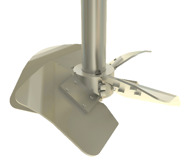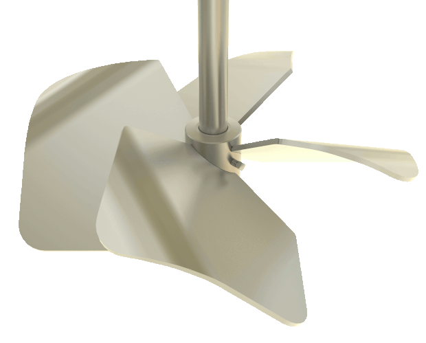 Developed in the industry as a “high solidity” design with a high ratio of blade area as compared to the cross sectional area. Although there is added cost by doing this, the design performs very well for gas/liquid blending applications such as fermentations. Often used in conjunction with a Smith Turbine. The PV4 impeller is able to work in a gas-rich concentration without large reduction in power input.