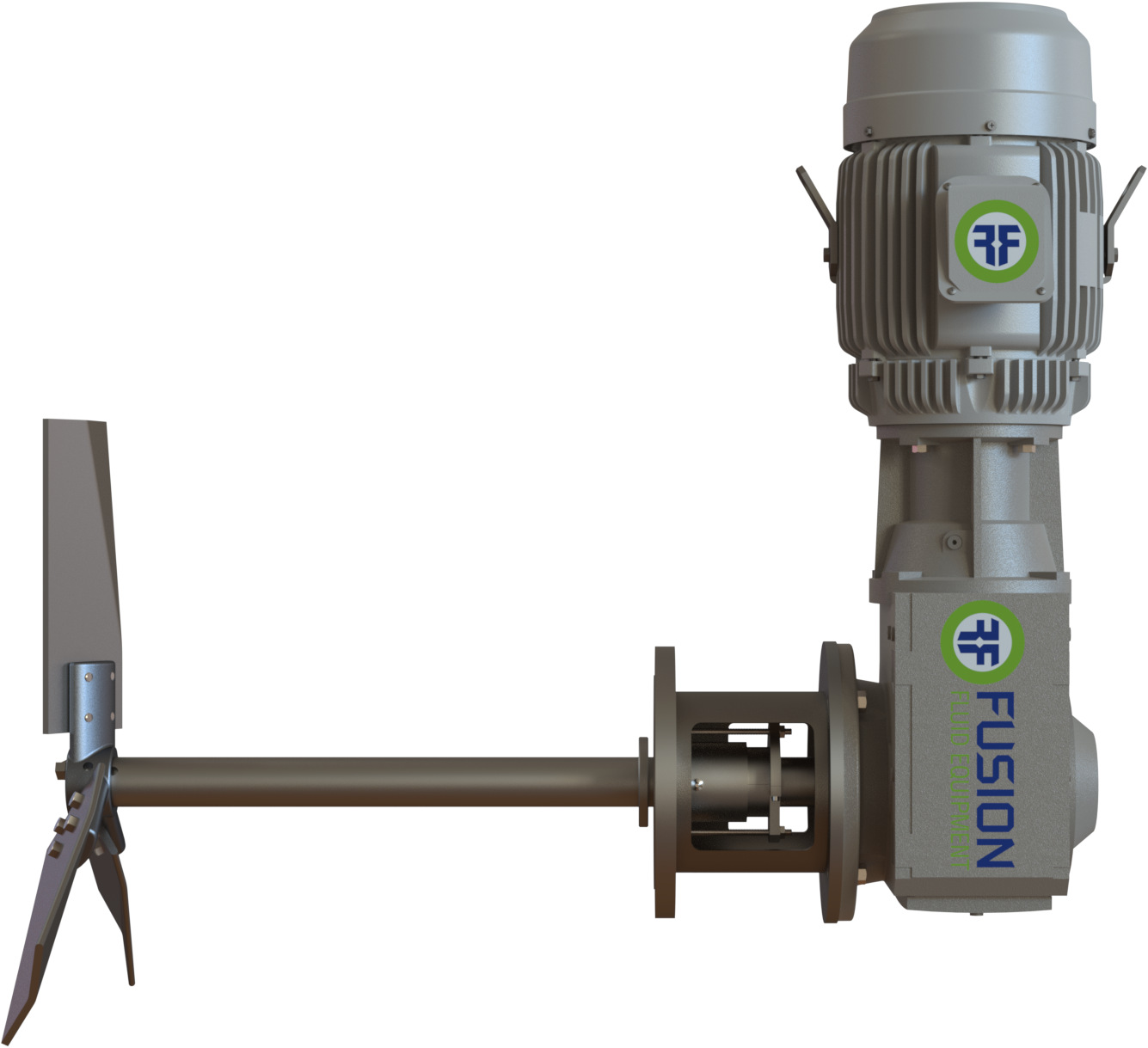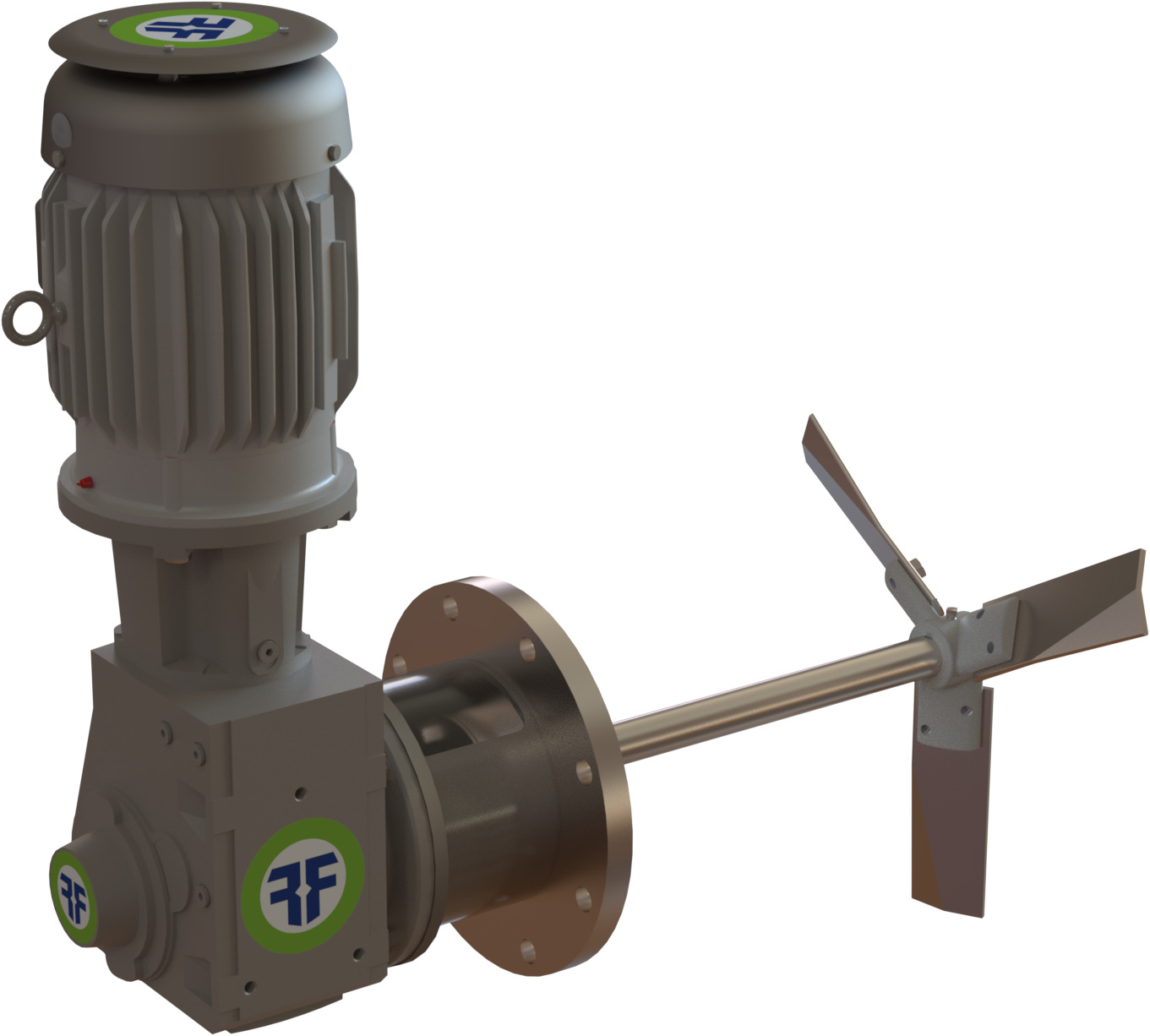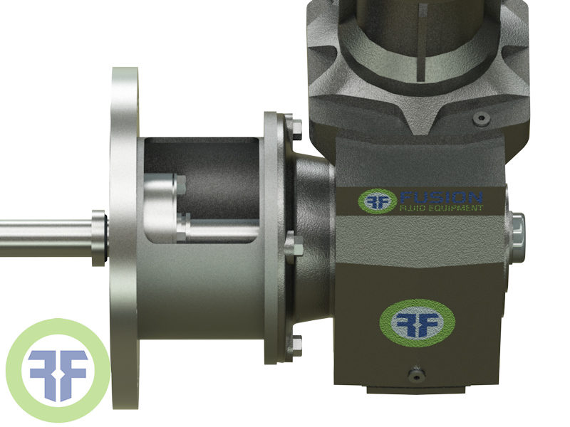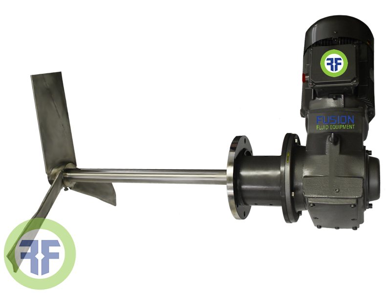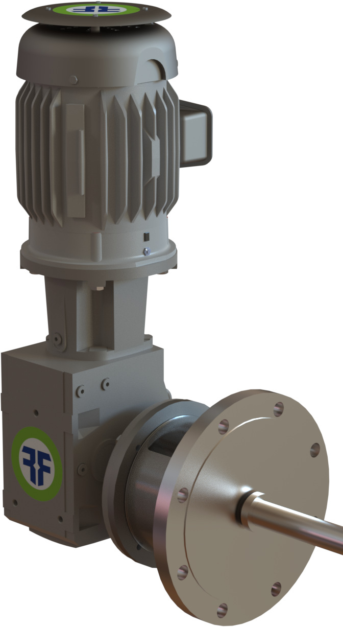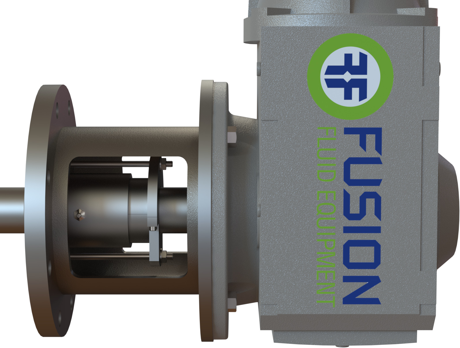 Fusion’s FR3 Series mixer drive is a rugged 3-stage and 4-stage helical/bevel drive built for large scale storage and process tanks. This series is intended for critical applications where reliability is crucial. Additionally, this offers a high torque option for applications where preference for gear drive side entry mixers over belt driven configurations. The RIGHT-ANGLE drive configuration provides an installation with reduced projection from the sidewall of the tank. The high strength housing combined with the high capacity bearings and gearings allow for precise shaft and gear alignment and quiet operation. Fusion’s FR3 series drive also includes a double lip seal with trash guard for superior protection against oil leaks and outside contaminates.