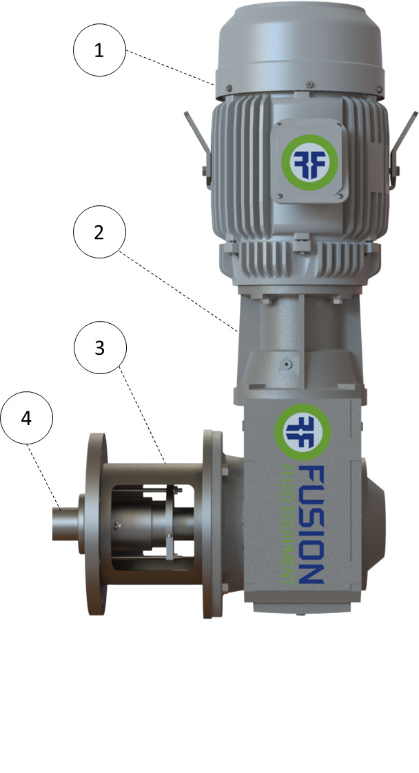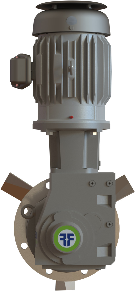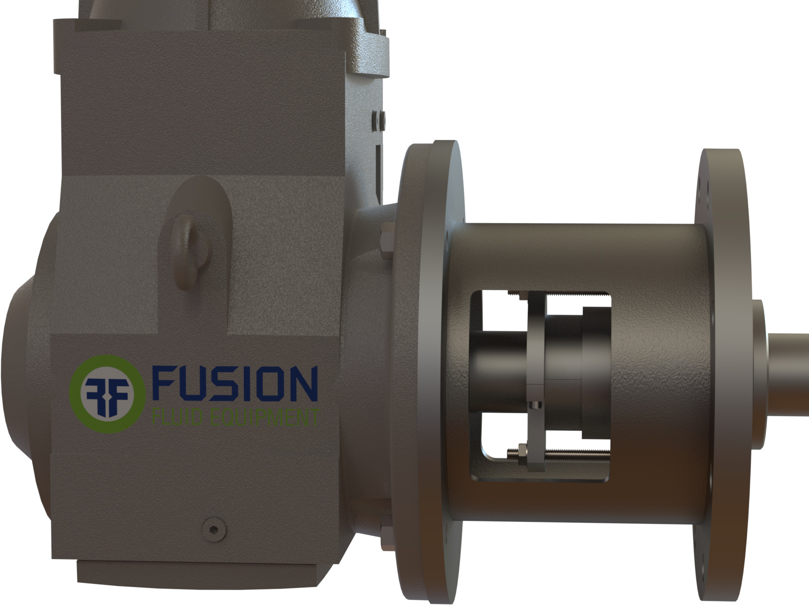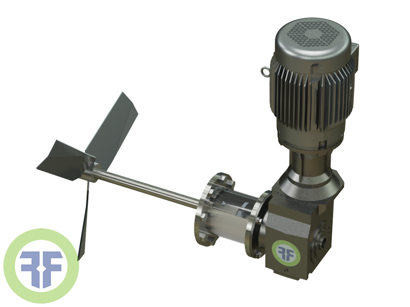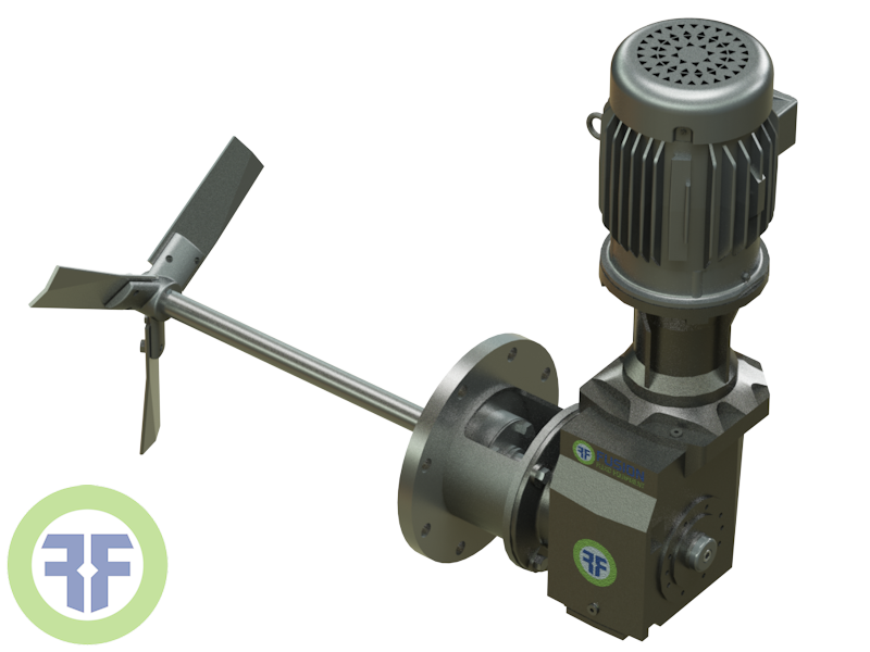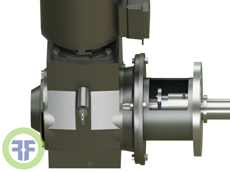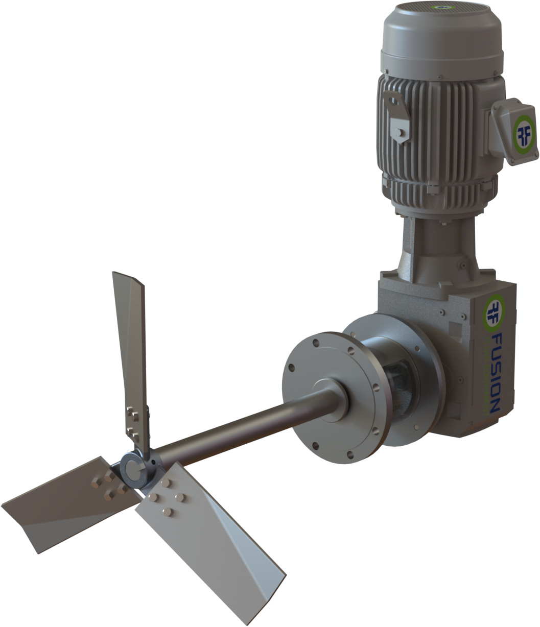 Fusion’s FR3 Series mixer drive is a rugged 3-stage and 4-stage helical/bevel drive built for large scale storage and process tanks. This series is intended for critical applications where reliability is crucial. Additionally, this offers a high torque option for applications where preference for gear drive side entry mixers over belt driven configurations. The RIGHT-ANGLE drive configuration provides an installation with reduced projection from the sidewall of the tank. The high strength housing combined with the high capacity bearings and gearings allow for precise shaft and gear alignment and quiet operation. Fusion’s FR3 series drive also includes a double lip seal with trash guard for superior protection against oil leaks and outside contaminates.