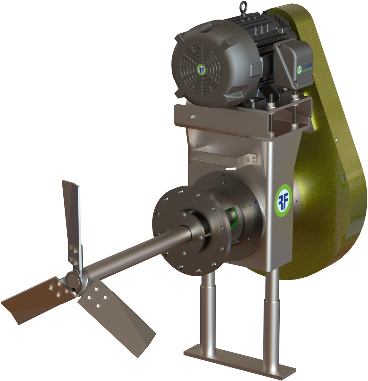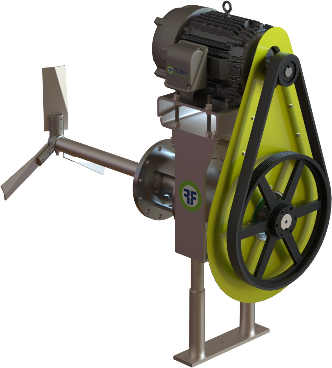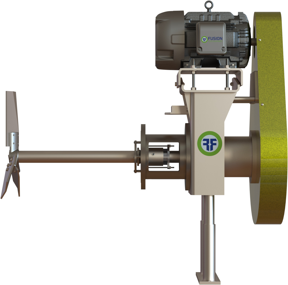 The SBC-S series might possibly be the very best belt driven side entry mixer every built! The design comes from listening to how our customers in the Pulp and Paper industry continue to struggle with our competitions’ mixers, Fusion developed a design with reliability and ease of maintenance in mind. GIANT drive bearings inside of an independent bearing cartridge with hollow bore connection provide extreme support for the mixer shaft in abusive duty applications. Each bearing in our standard drive is rated for 40,900 lbs of radial loading!