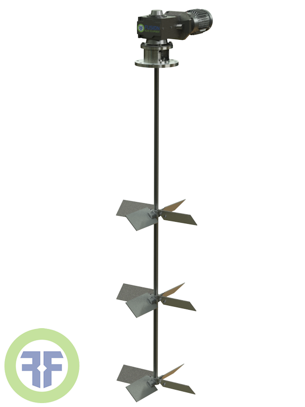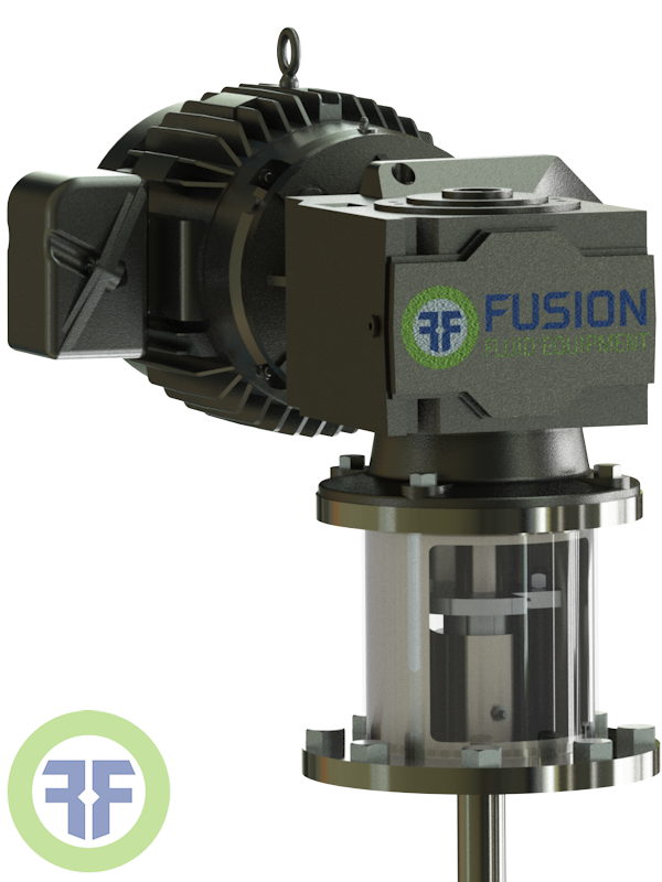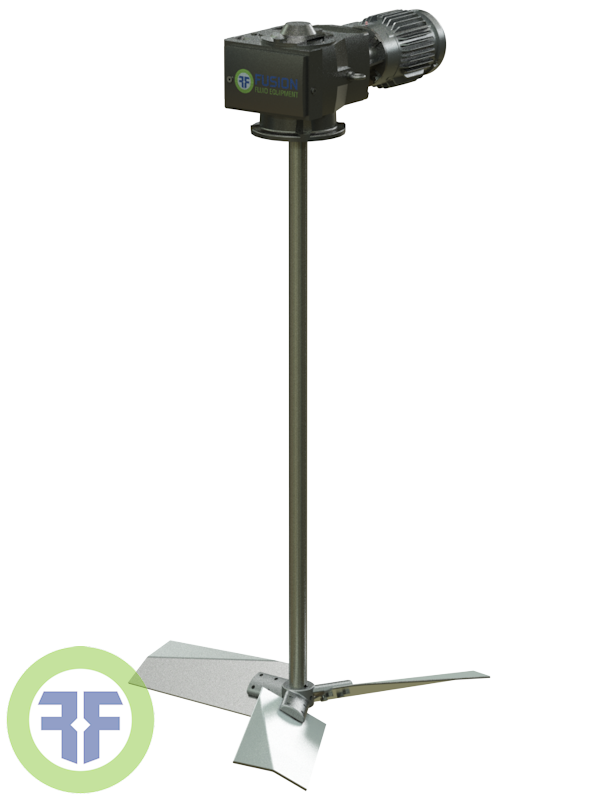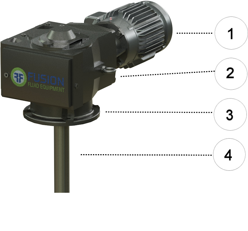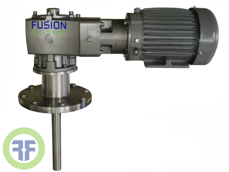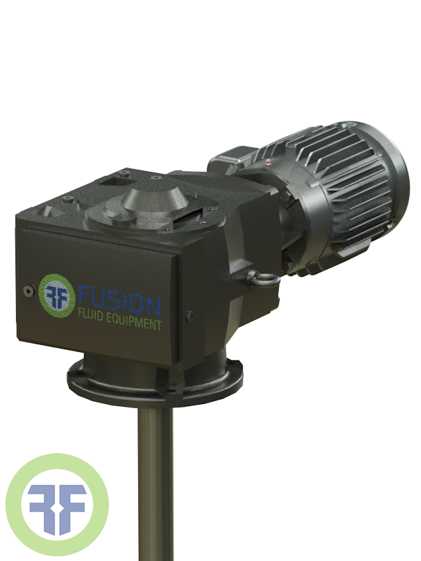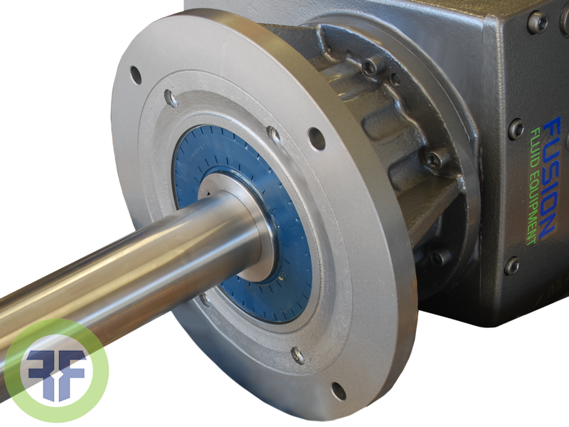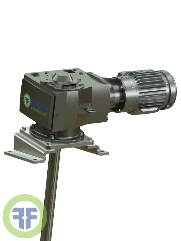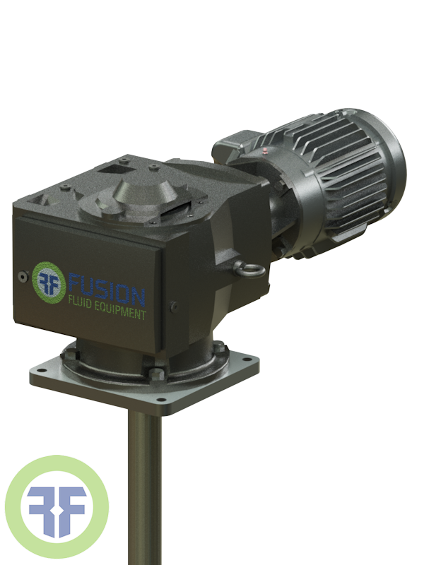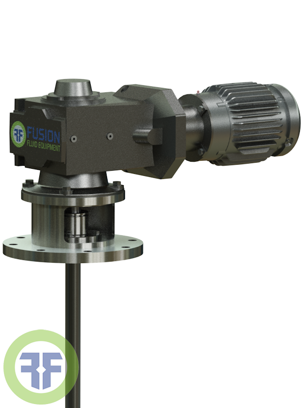 Fusion’s FR3 Series mixer drive is a rugged 3-stage and 4-stage helical/bevel drive built for various mixing applications, ranging from the relatively small to large scale processes. This series is intended for critical applications where reliability is crucial. The RIGHT-ANGLE drive configuration provides an installation requiring reduced headspace above the tank. The high strength housing combined with the high capacity bearings and gearings allow for precise shaft and gear alignment and quiet operation. Fusion’s FR3 series drive also includes a double lip seal with trash guard for superior protection against oil leaks and outside contaminates.