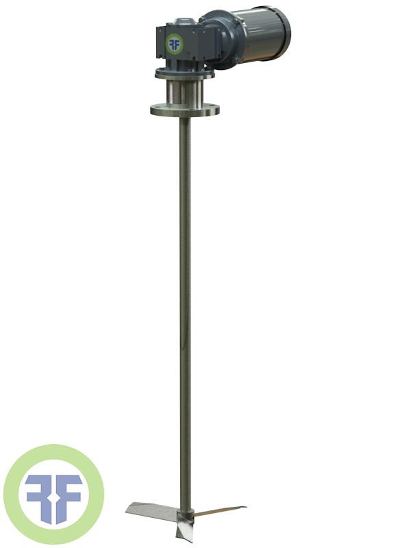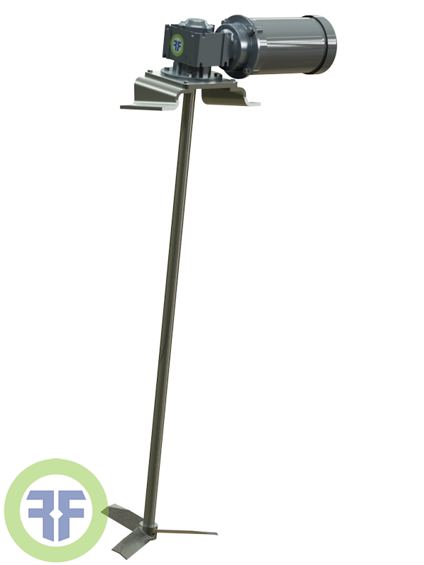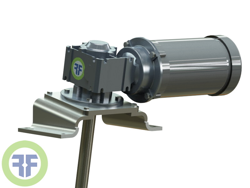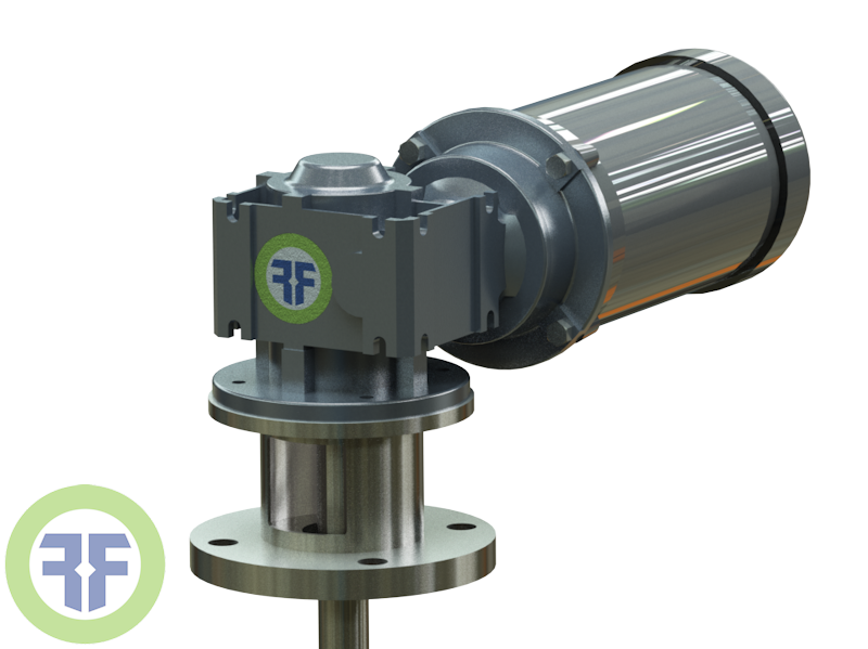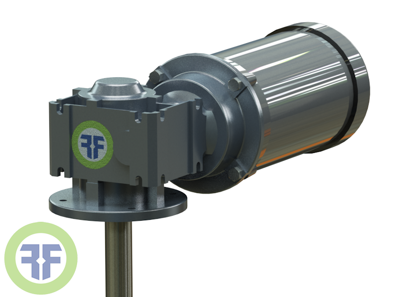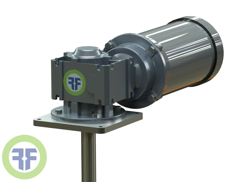 A low cost custom gear option for small scale application where use is intermittent. Great for small pilot scale applications where the typical “portable mixer” bearing frame units are too heavy or too costly. Worm gear provides a single stage gear reduction with compact frame.