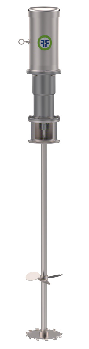 The Pro XL Stainless Series mixers are perfect for medium scale, high shear, or high intensity, batch processes requiring heavy duty mechanical configurations. However, unlike the Industrial Series, the Stainless Series uses a stainless-steel motor and bearing frame. Different washdown motor duty options, sizes, and voltages provide a wide range of mixer options for many applications. Additional options, including various seals, impeller types (hydrofoil, Bioprop, disperser blades, and high shear heads), mounting options, and gear ratios, are available. The Pro XL Stainless mixer uses dual sealed drive bearings with radial load rating of at least 11,700 LBF per bearing. Modular construction allows for easy service of drive components as well as longer drive component life cycle. NEMA connections allow for interchangeability of parts. Stainless steel mounting components and all fastening hardware are standard.