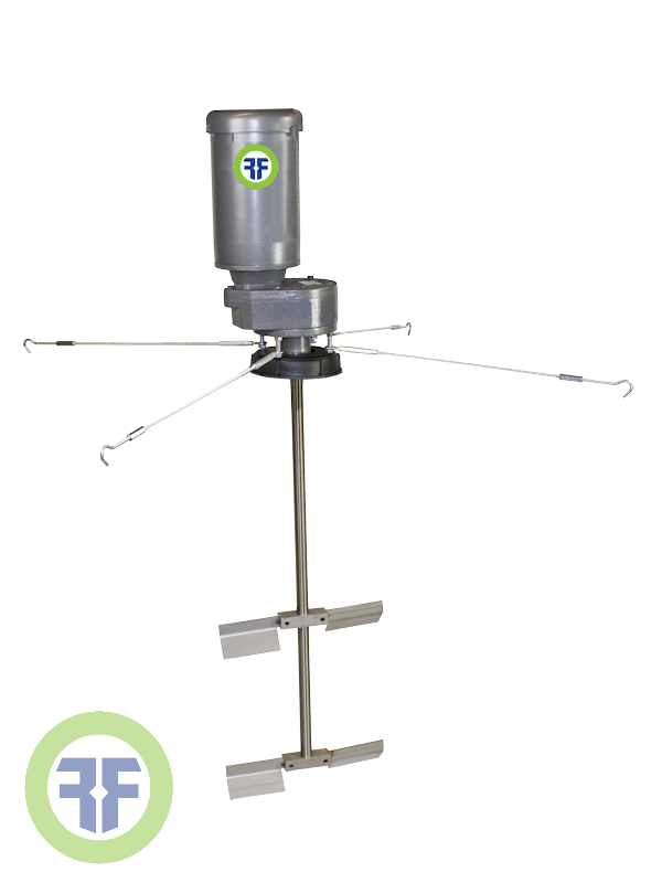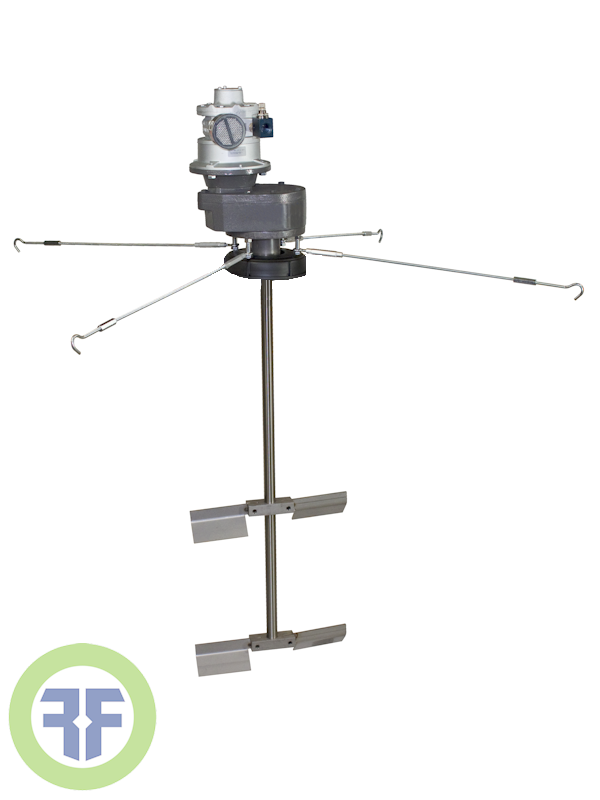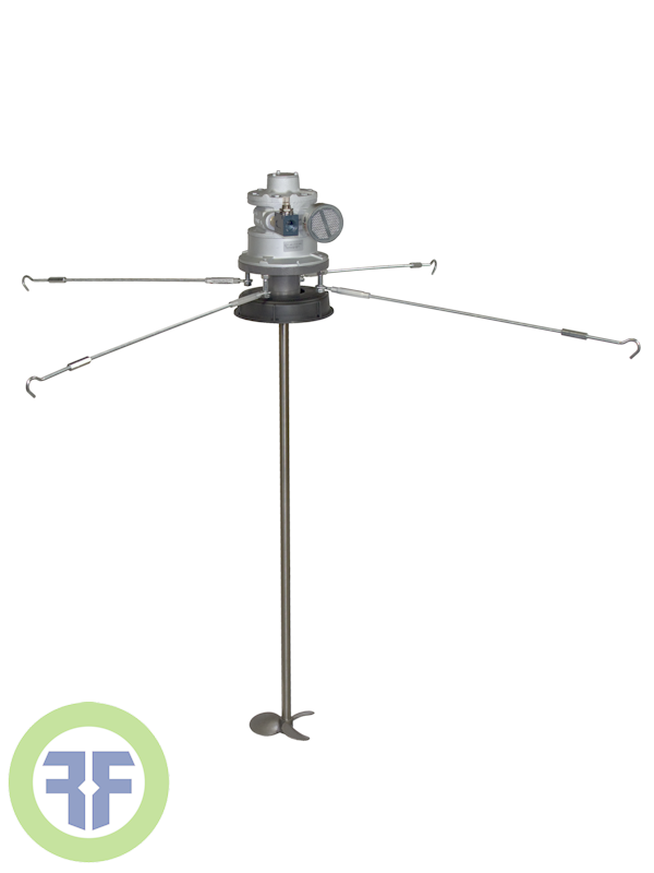Portable, top-entry, bulk fluid tote mixers for 275 gallon Schutz style IBC tote containers. Easy attachment to standard tote with 6” screw cap. Available with electric or pneumatic motors, gearboxes, and a range of mixing impellers that easily fit through the tote opening. This versatile, lightweight, and easy-to- use mixer provides uniform bulk fluid mixing.